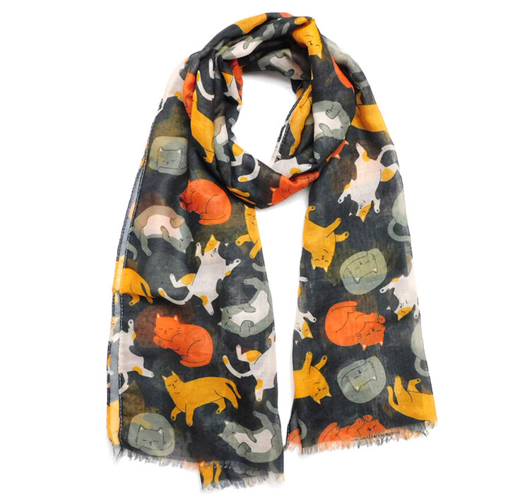 고양이 프린트가 예쁜 얇은 스톨 머플러냥